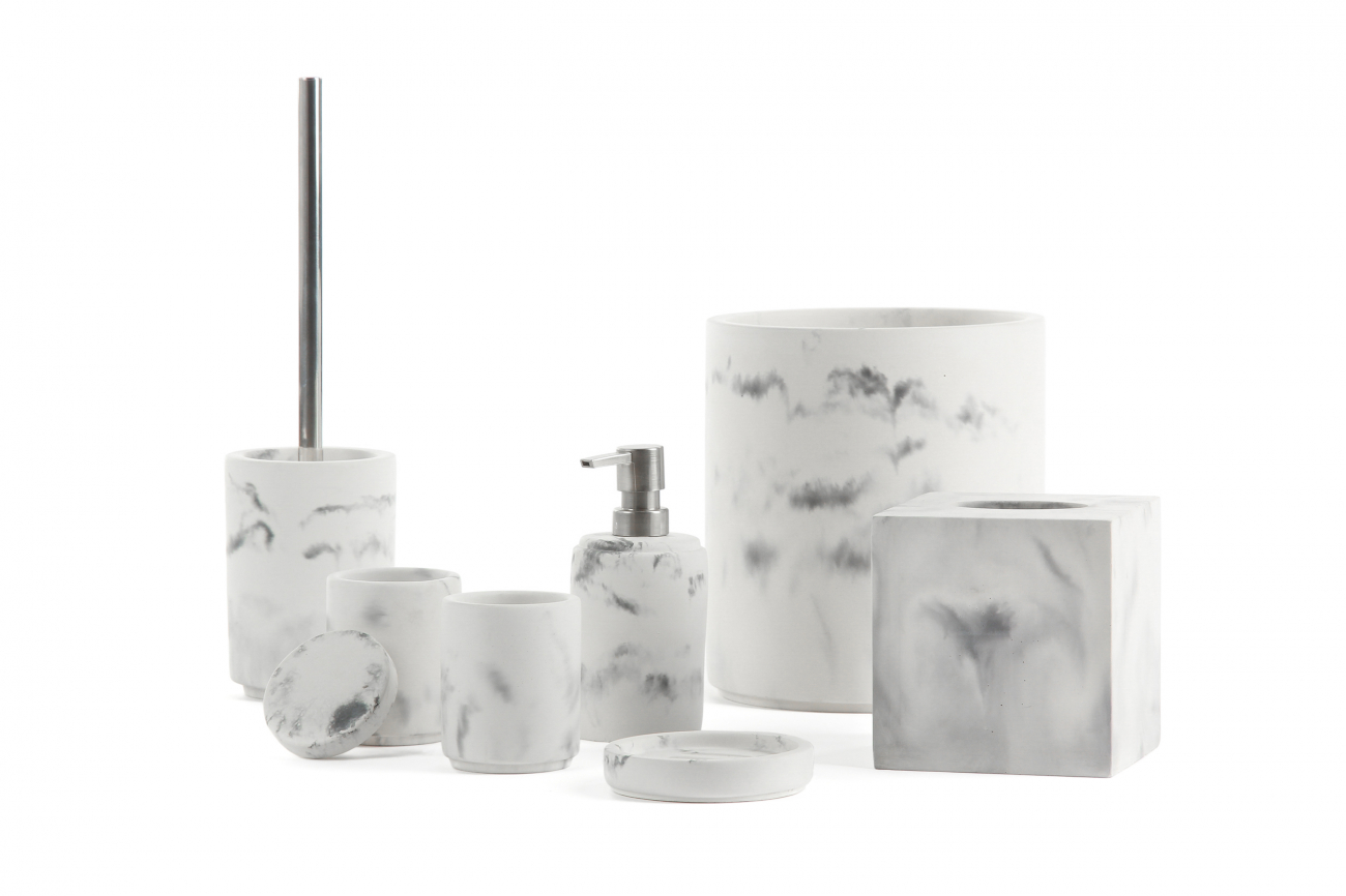 Стаканы, банки, мыльницы, дозаторы и другие предметы коллекции Wuhan сделаны из бетона, а это позволяет гарантировать их долговечность и прочность.