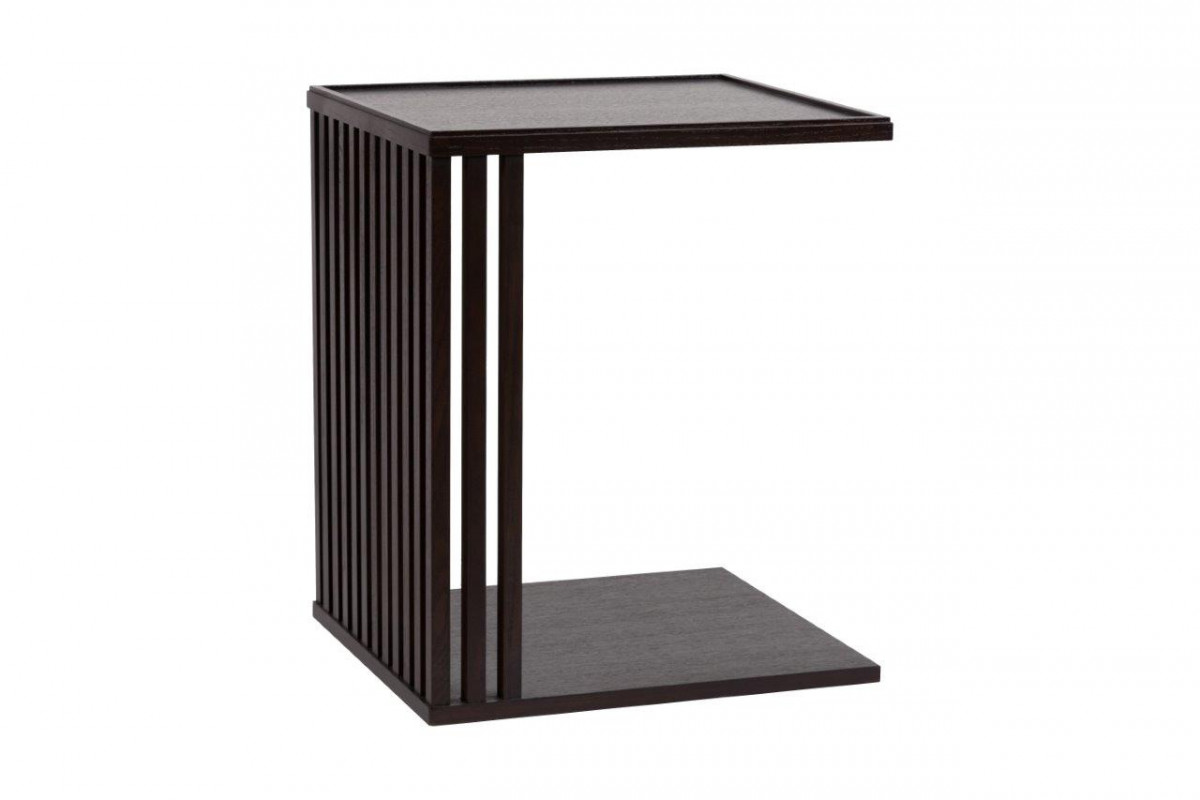 Необычный оригинальный кофейный столик Sorella станет достойным украшением гостиной, спальни или офиса. Она выполнен в лаконичном стиле, без какого-либо декора, зато имеет запоминающийся дизайн, ведь он не похож на стол в общепринятом понимании. Каркас столика сделан из дерева, а квадратная столешница — из МДФ. Столик Sorella выполнен в тёмно-коричневом цвете, имеет квадратное основание, которое соединяется со столешницей с помощью узких реек.